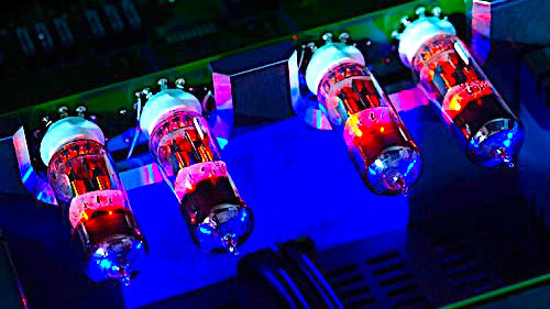 Trilogy 915R Preamplifier —Interior photo of extremely linear gain / high transconductance / high current Valve Tubes.